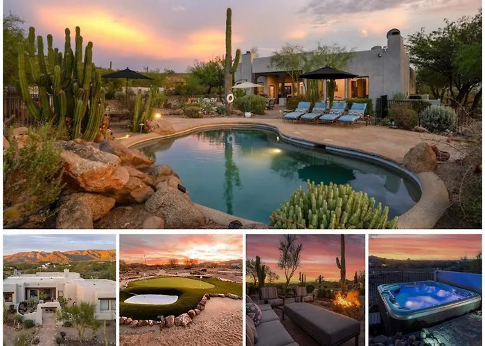 Die Villa 6 Hole Golf Hot Tub Poolmore Featured On Tv Show Staycation bietet Gästen Selbstversorgereinrichtungen wie eine voll ausgestattete Küchenzeile sowie ein Essbereich und ein Essbereich im Freien. Die Küche verfügt außerdem über einen Wasserkocher, einen Kühlschrank und einen Herd. Es gibt in dieser Unterkunft in Anthem einen Jacuzzi, während die Umgebung ideale Bedingungen für Minigolf und Tischtennis bietet.